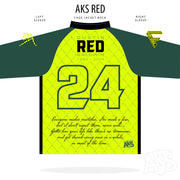 The design features quotes from Red and icons that were dear to him. This pre-order allows you to choose a custom number. Red's number was 00. If you don't want any number, please enter 86 in the number field, if you in fact want 86 please tell us in a note.