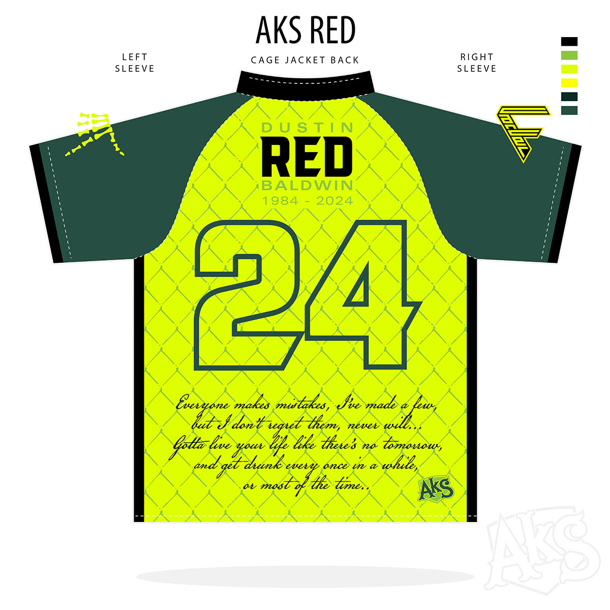 The Wetsu team asked us to create a memorial jersey for Dustin "Red" Baldwin. We received the family's approval and designed it in Wetsu team colors. We also extended the design to cage jackets and hoodies. You can pre-order the jersey until April 20th.