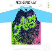 AkS Splatter Cage Jacket in Navy, Neon Green, Neon Pink