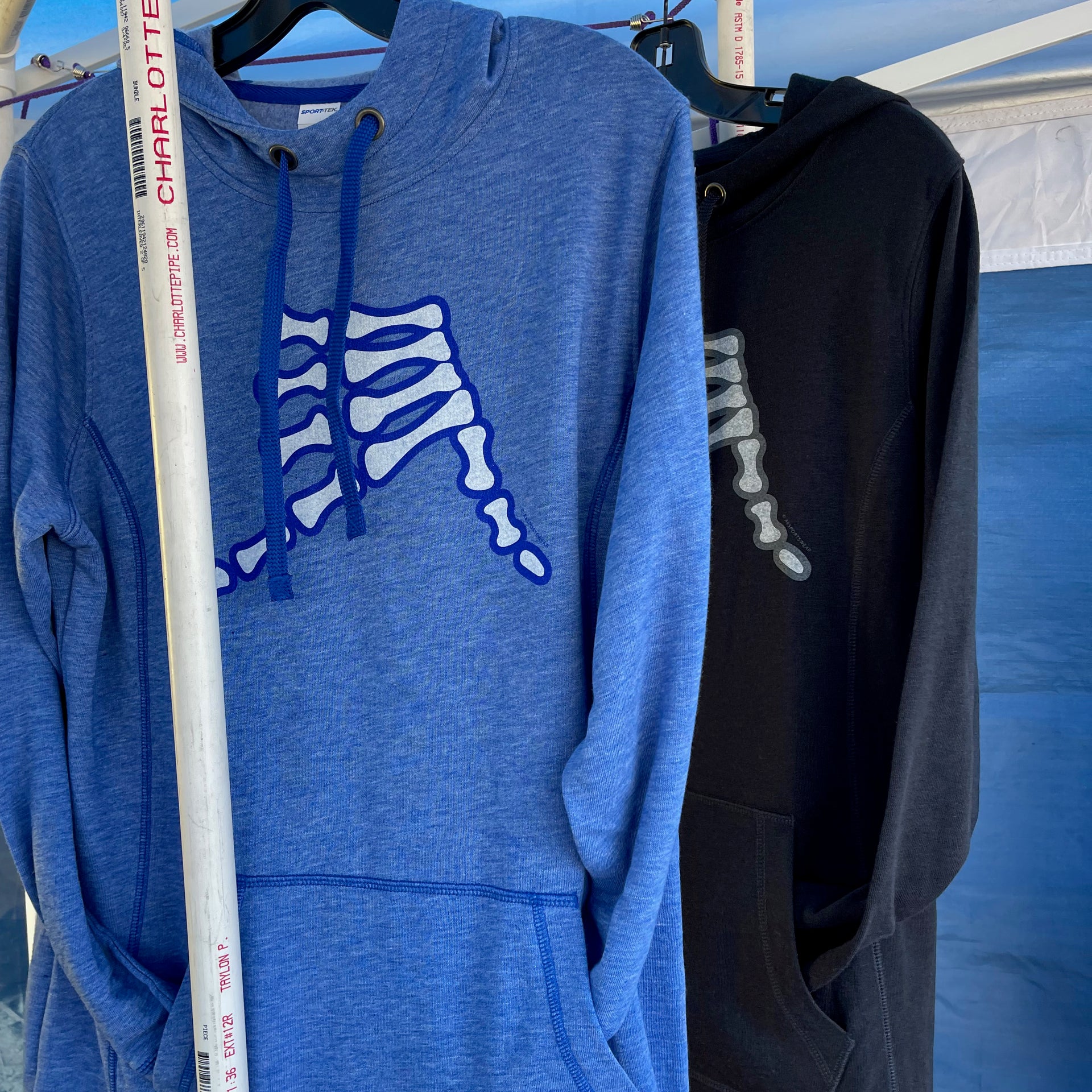 AkS Bones is our answer to explaining where you live in Alaska. White with Black outline on front, AkSportswear shield on back