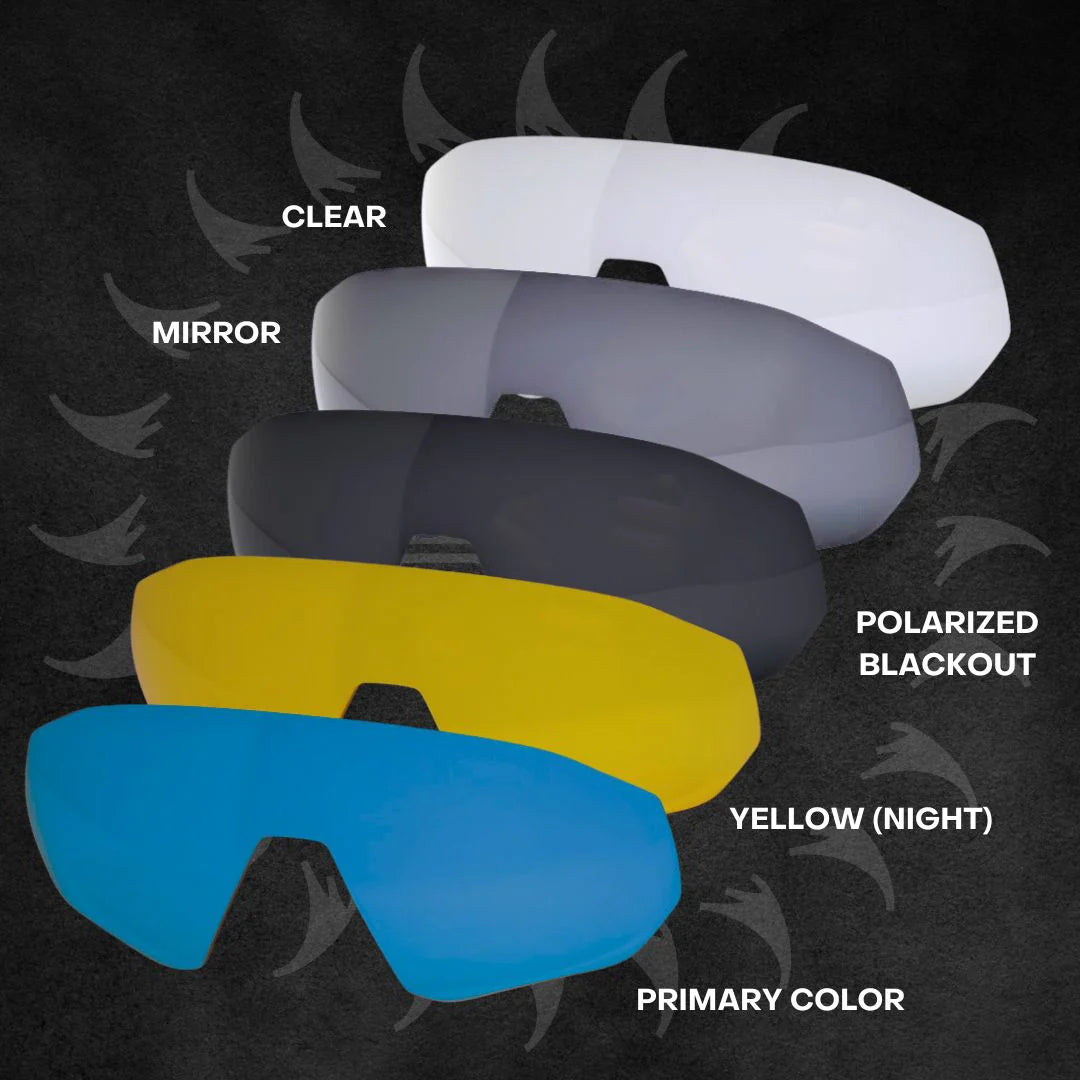 - FIVE ULTRA PERFORMANCE LENSES - With five HD shielded, performance lenses, these glasses are made for making plays. Includes colored lens, mirror lens, blacked-out lens, clear (safety) lens, and night-vision lens.