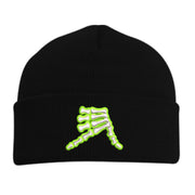 AkS Bones Beanie Knit Cuff in Black & White & Neon Green