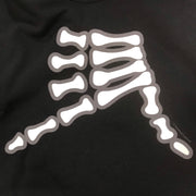 AkS Bones is our answer to explaining where you live in Alaska. White logo with Charcoal outline on front of Black hoodie. AkS Shield logo on back lower right.