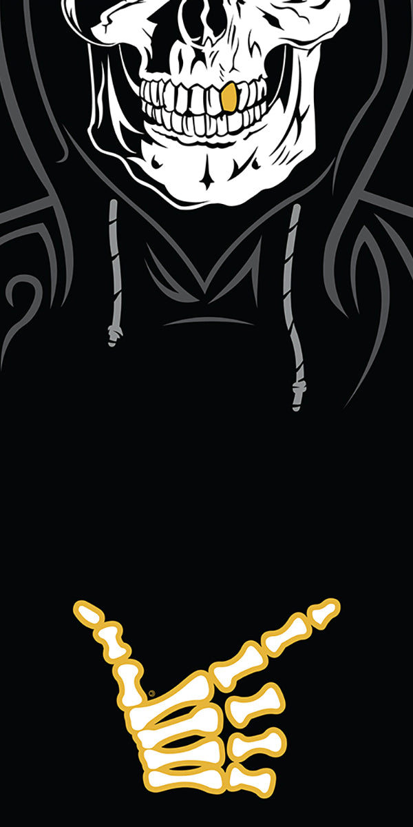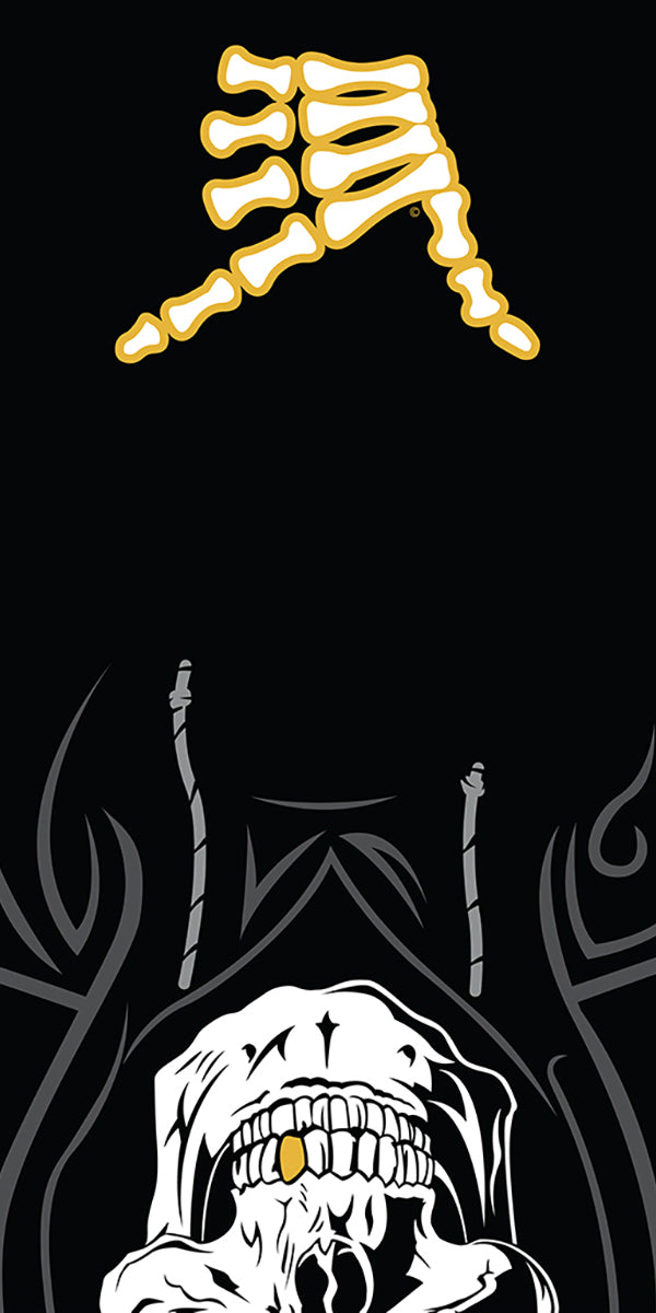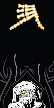 The Reaper, an AkS Originale, is available as a Gaiter. Use the big face design on one end and the AkS Bones logo on the other end, it gives you the flexibility of two designs within one purchase.