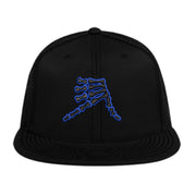 AkS Bones is our answer to explaining where you live in Alaska. Black 3D with Royal Blue outline on a Black flexfit flatbill trucker hat