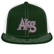 AkS Original Flatbill Trucker Hat in Dark Green & White with Purple
