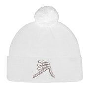AkS Bones Beanie Pom-Pom Cuff in White & Silver