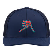 AkS Bones Trucker Hat in Navy with Red Orange and Teal