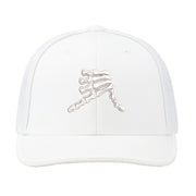 AkS Bones is our answer to explaining where you live in Alaska. White 3D with white outline on a White trucker hat