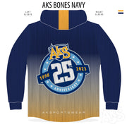 AkS Bones is our answer to explaining where you live in Alaska. Bones logo on the front and 25th Anniversary logo on the back.