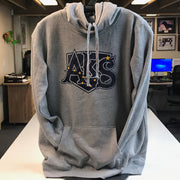 Our Ursa Major jersey print with Navy and Yellow shield logo on a Cowl Neck Women's cut Hoodie. Features AkS Circle logo on back.