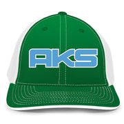 AkS Big Chi Trucker Hat in Kelly & White with Columbia & White