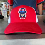 Our Uncle Slam mascot in hat form. Red, White, Blue, and Grey logo with Red AkSportswear on the back.