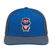 Our Uncle Slam mascot in hat form. Red, White, Blue, and Grey logo with  Red AkSportswear on the back.